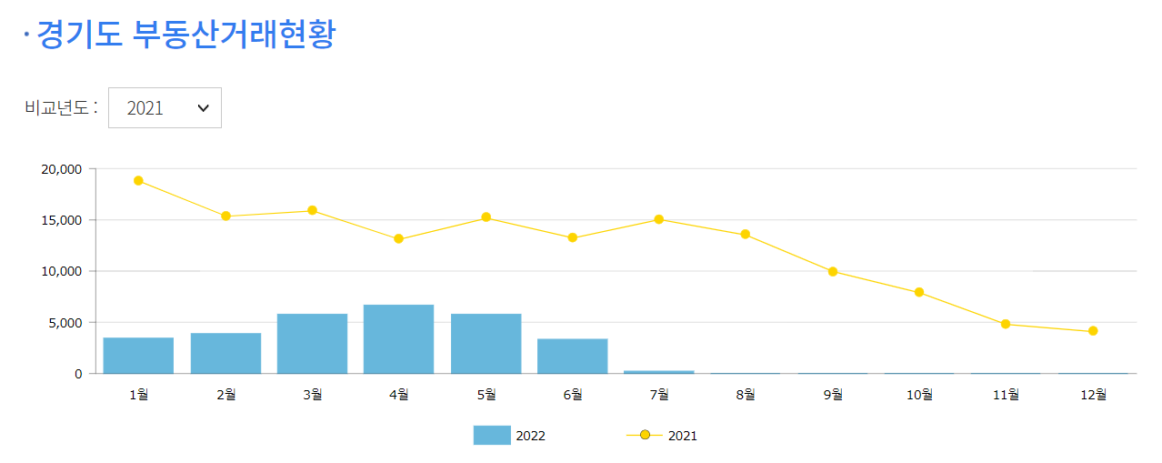 확실히 21년도에 비해 거래량이 1/6~1/3 정도로 줄어들었습니다.