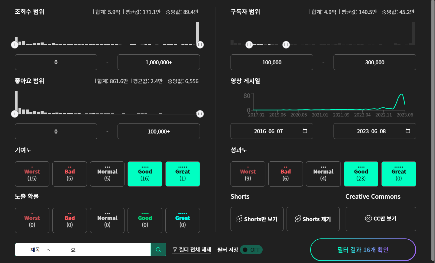 필터 결과 16개가 나왔다. 비교군이 없어 많은 건지 적은 건지 감이 안 온다.