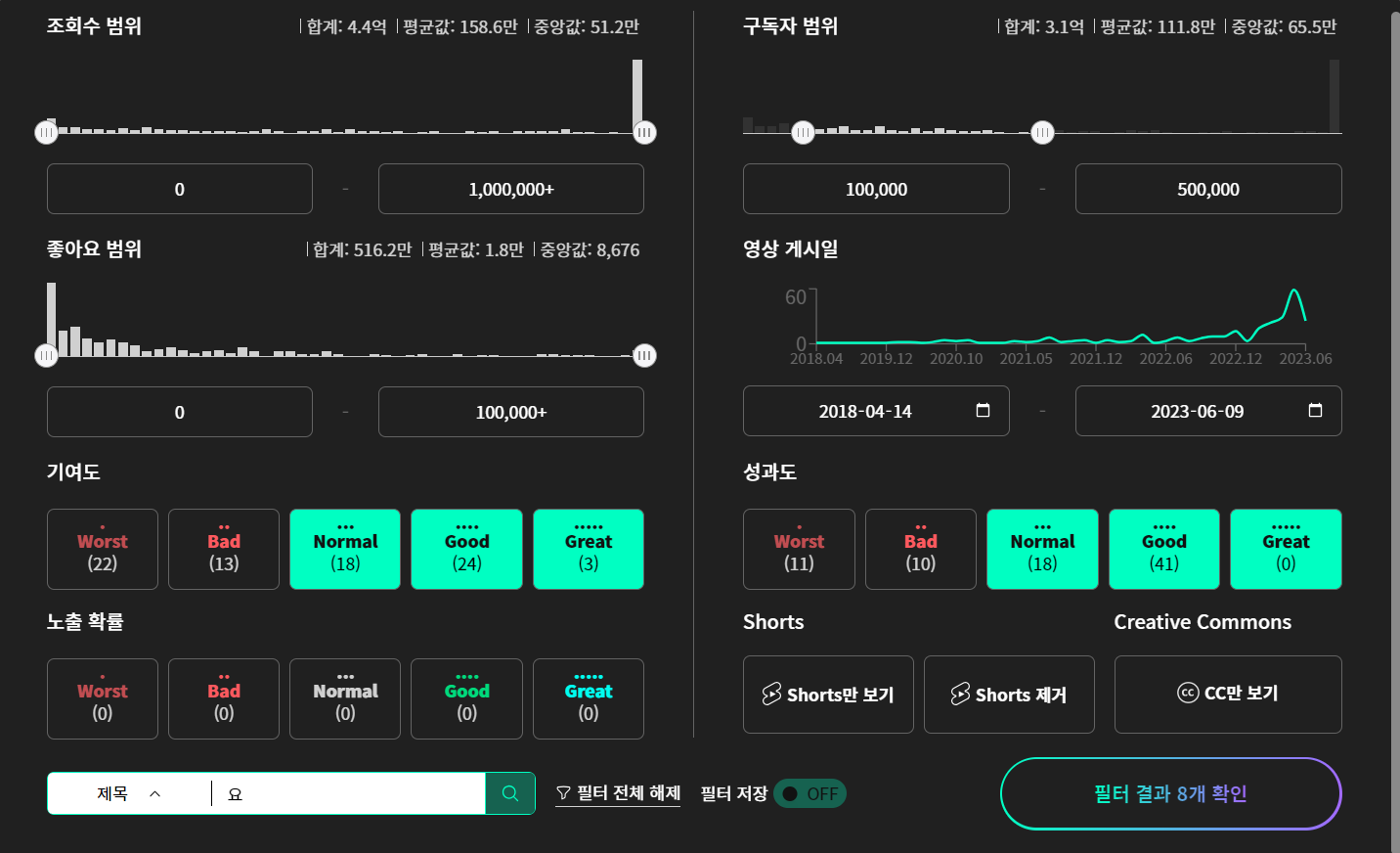 또 100만이 넘는 요리 유튜버는 대부분 '정보성+영상미+재미+흥미+호기심 유발' 등을 다 가지고 있더라.